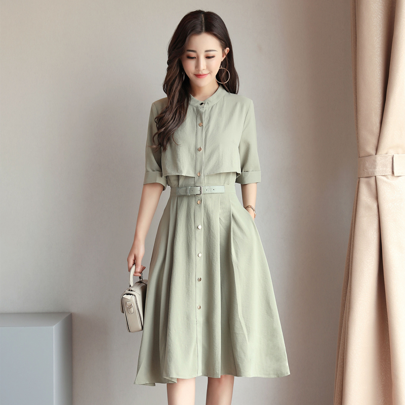 2018夏季新款韩版女装修身显瘦款A字裙子气质仙春夏装雪纺连...