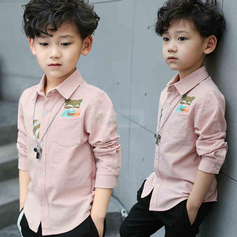 童装男童春装衬衫长袖2018新款春秋儿童纯棉男孩白衬衣上衣韩...