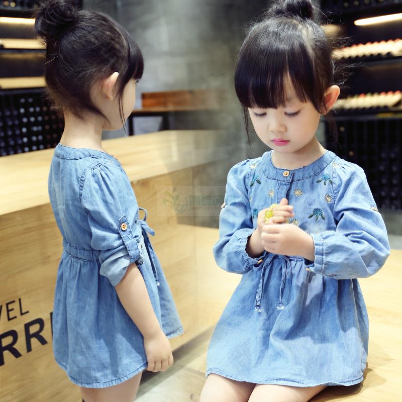 童装女童牛仔连衣裙2018春装新款3长袖4儿童5韩版6岁女宝...